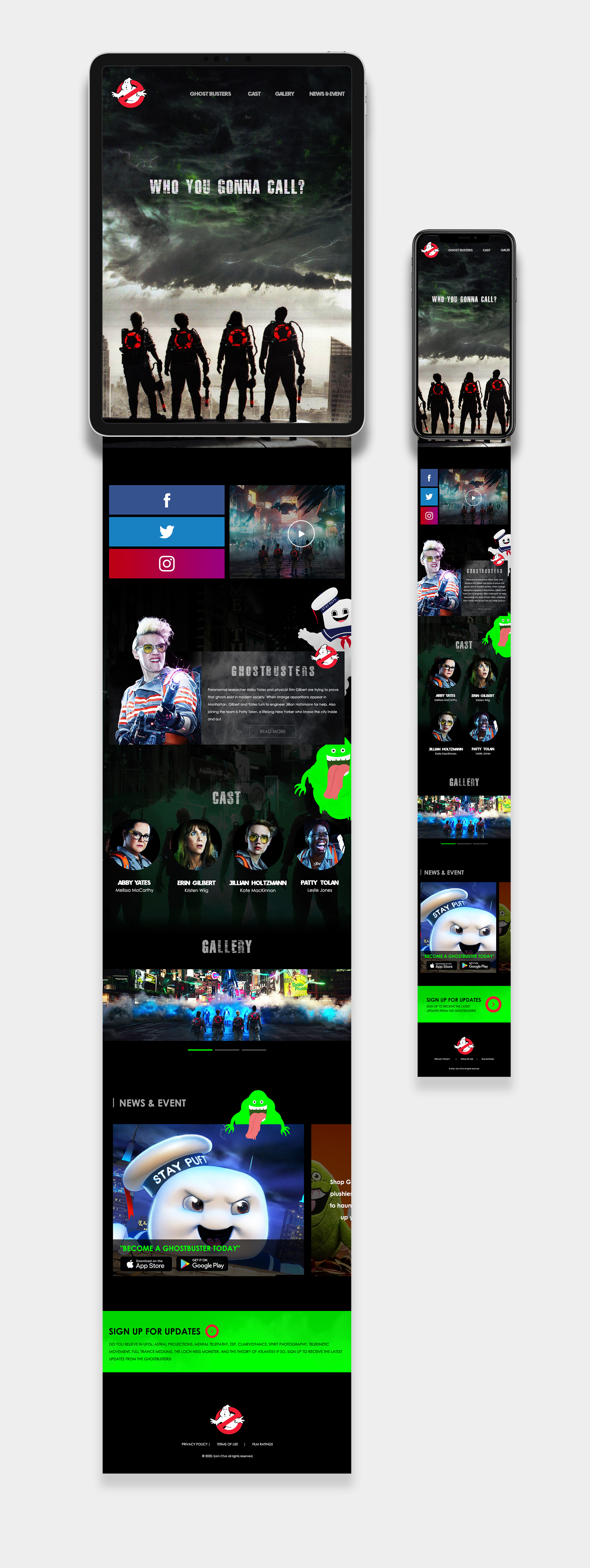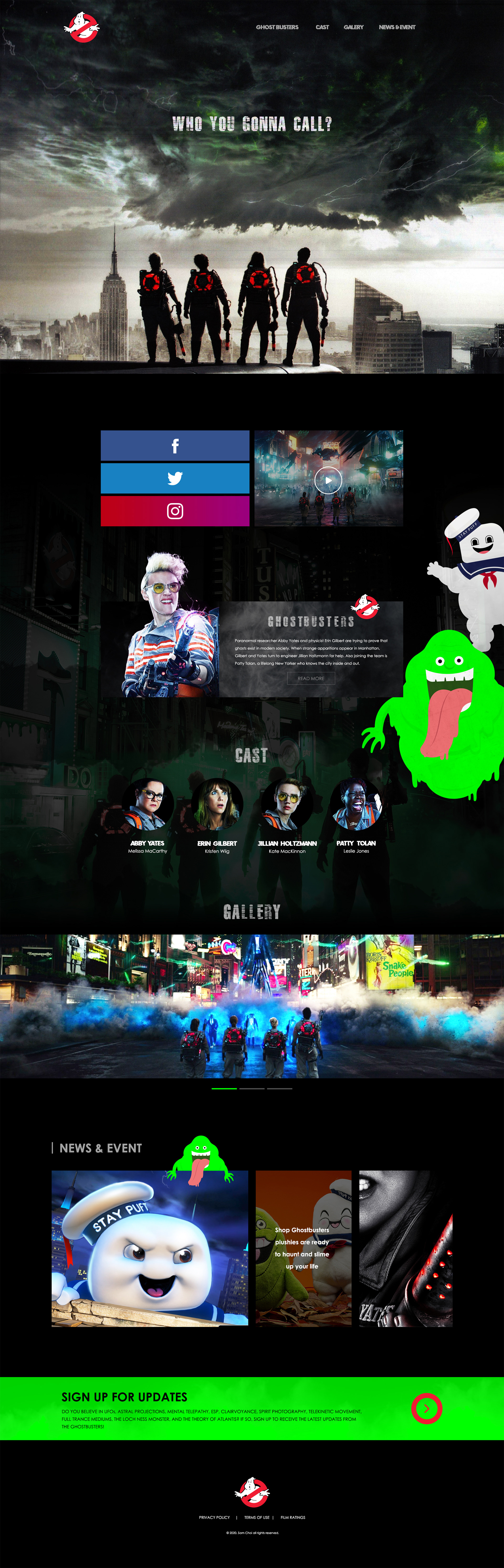 One of my favourite movies is Ghostbusters from 2016. I noticed that there was no official website so I decided to design a simple one-page website to remember how much I had enjoyed it.