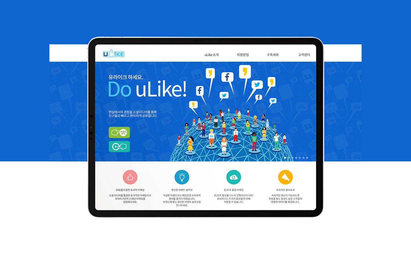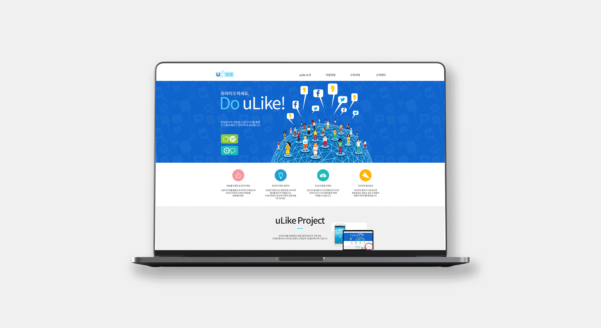 uLike was the main service that uLikeKorea used to focus on. uLike was an effective marketing solution using social media to promote eye-catching events based on the customer's interests. I designed all the web pages and then continued to build and maintain them through WIX.